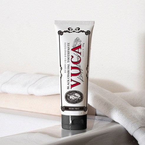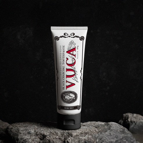 Vuca Classic High-Fluoride Black Charcoal Breath Care Vegan Toothpaste Herbal Mint Flavor, 110g, 4 Pack